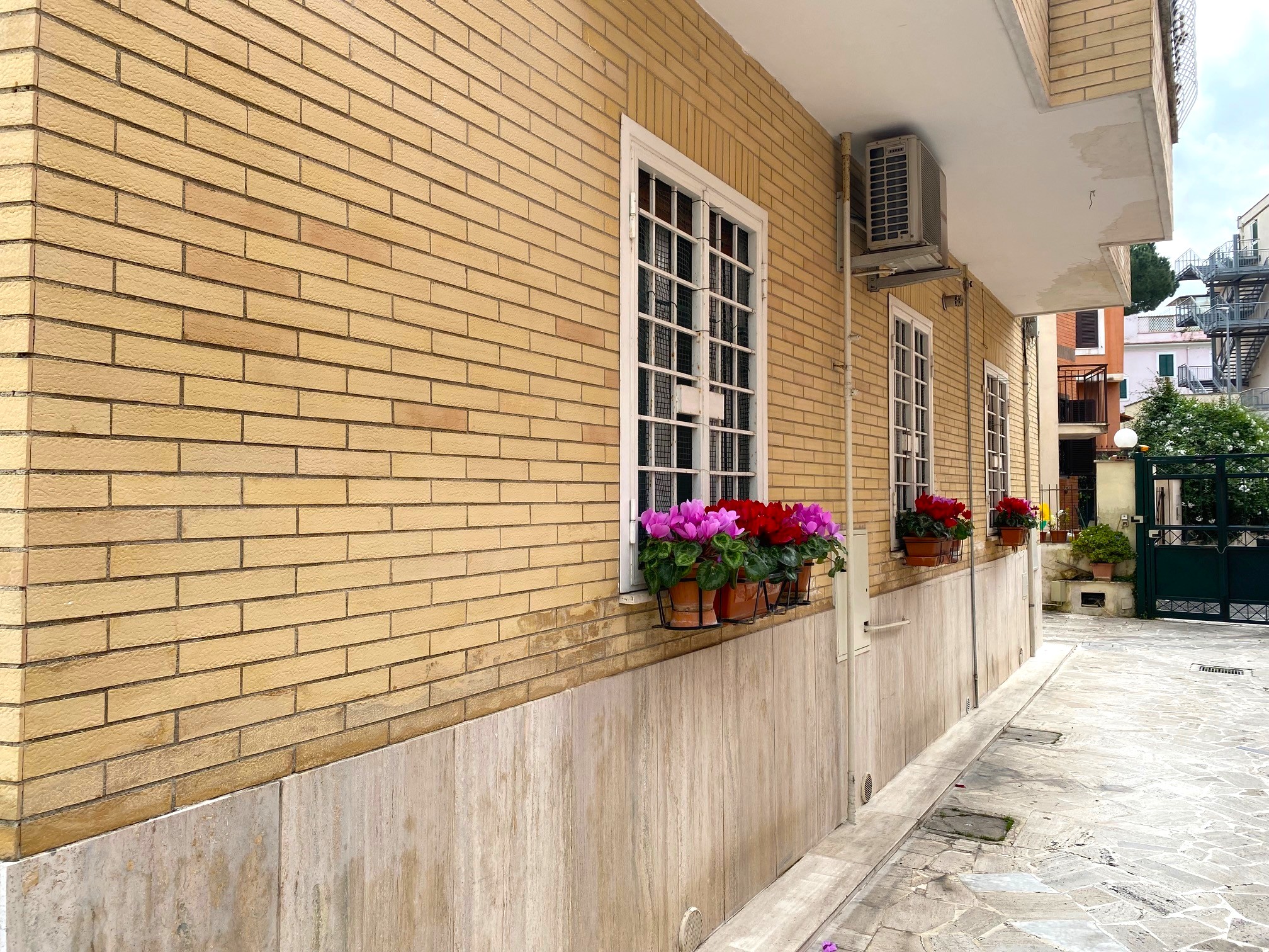 [in vendita] Palazzina in cortina ottimo stato in strada privata. 700 mt da metro Cornelia. Posto auto e posto moto nel cortile condominiale delimitato da cancello elettrico.